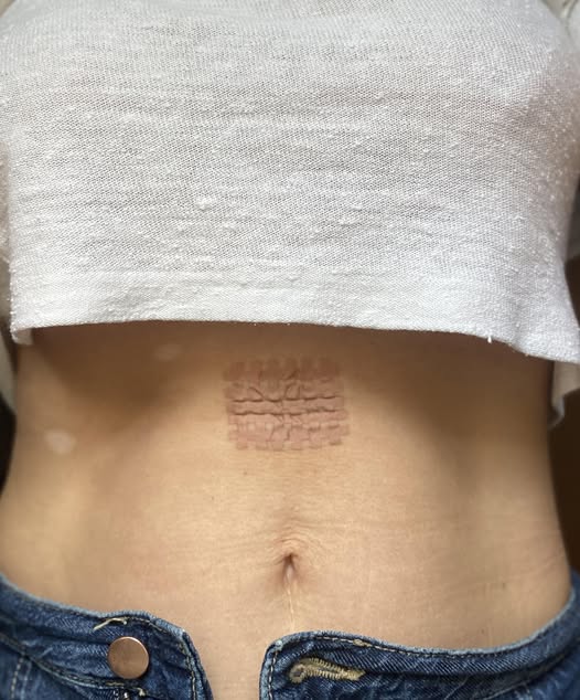 Ale teď k té fotce mého bříška. Křížové tejpy mi Klárka doporučovala na jizvy po císařském řezu. Tak jsem se je rozhodla vyzkoušet i na místo, které mělo při viscerální masáži vždy nejsilnější odezvu. A ono to zabralo. Kdo mě viděl v plavkách, ví, že to nosím už dlouho – stres x nestres. Samozřejmě je občas sundavám a vyměňuji. Rozhodně však nepociťuji napětí v břiše stresového původu a pokud neudělám dietní chybu, tak ani reflux.